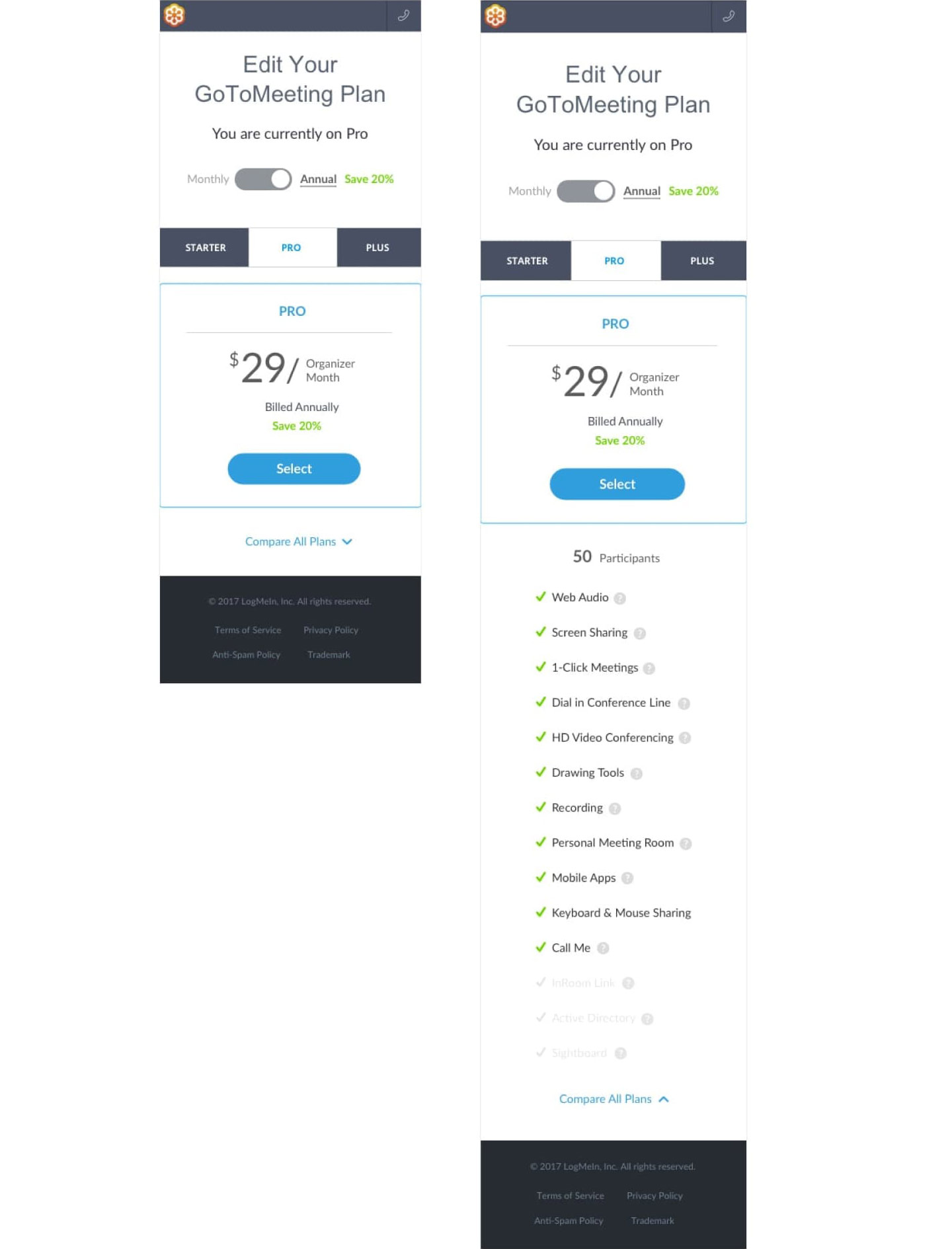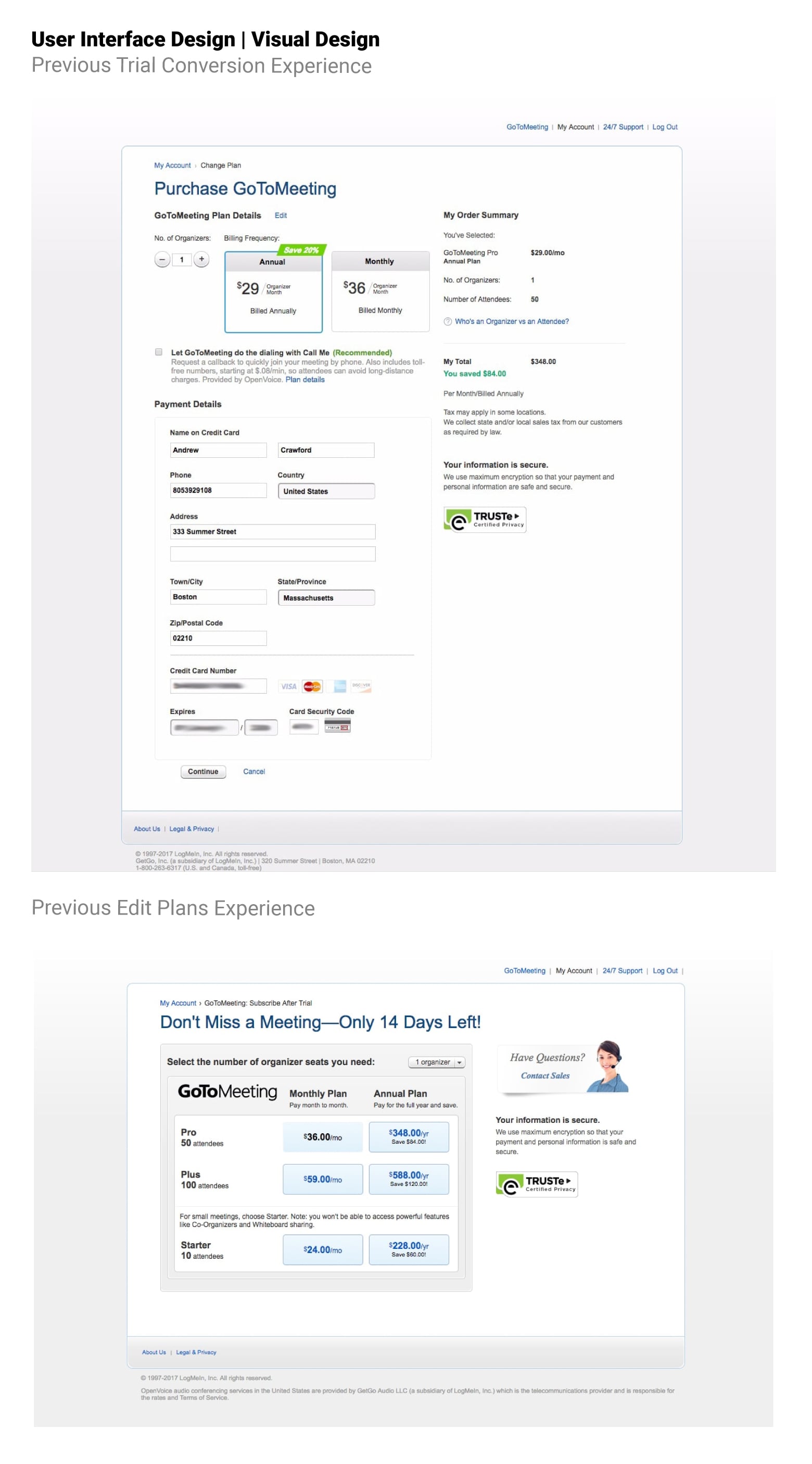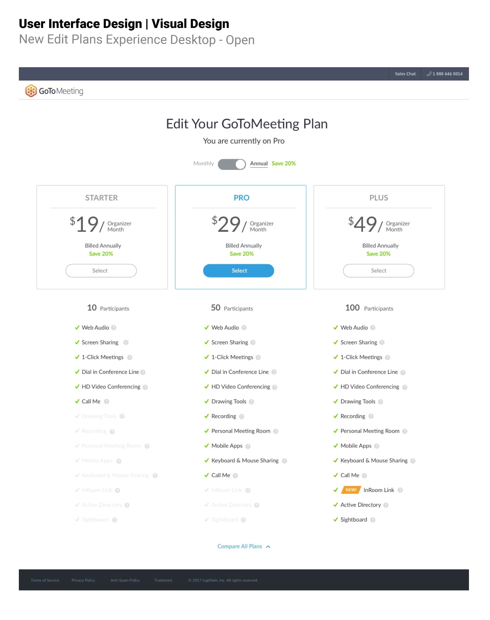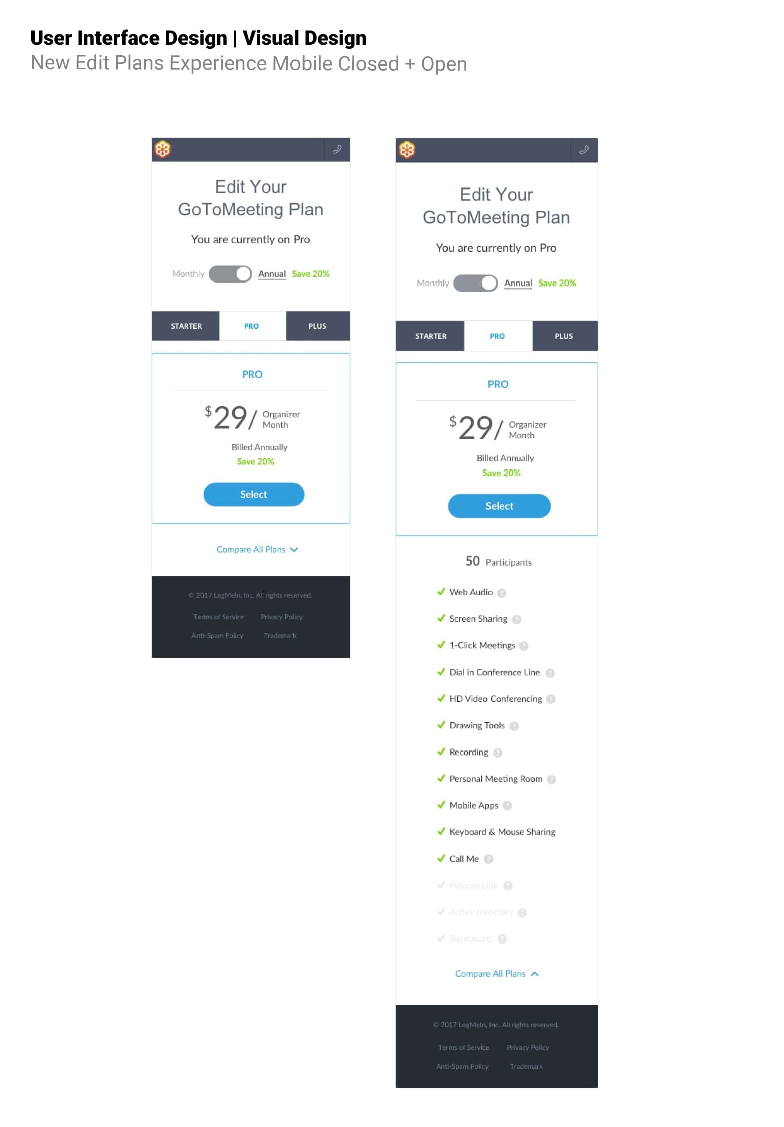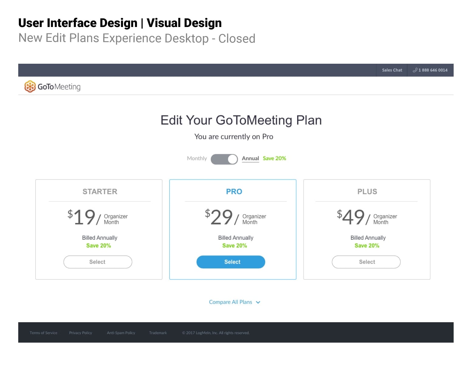 We also learned that within the current Edit Plans experience, users had a hard time comparing plans, comparing pricing, and comparing the features that met their needs. Finally, the current Edit Plans experience was not responsive across all browsers and devices. That problem was addressed by designing a new simplified, intuitive, and responsive experience.