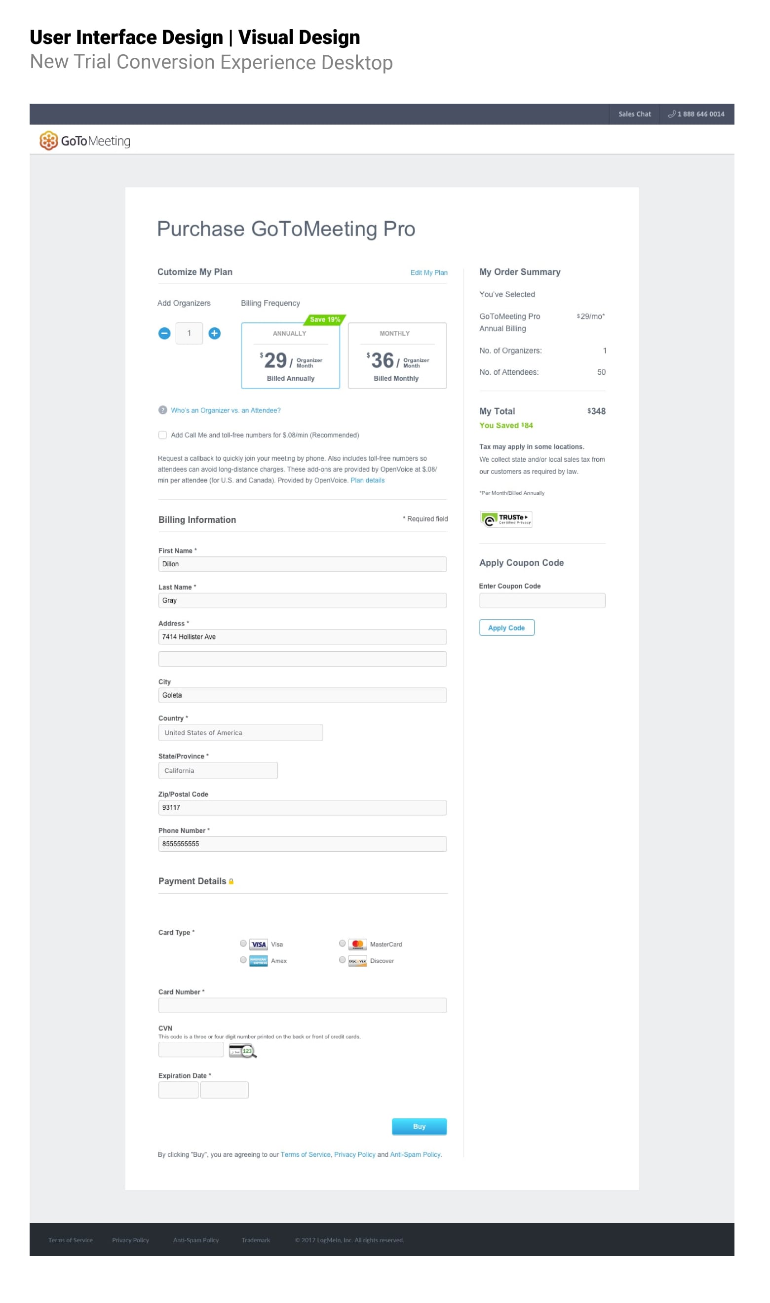 With the team, we analyzed and learned user behaviors, goals, and gained analytics. In Addition, we identified that 1 out of 3 users, who were ready to purchase, would input their credit card information but abandon the experience due to unnecessary steps.