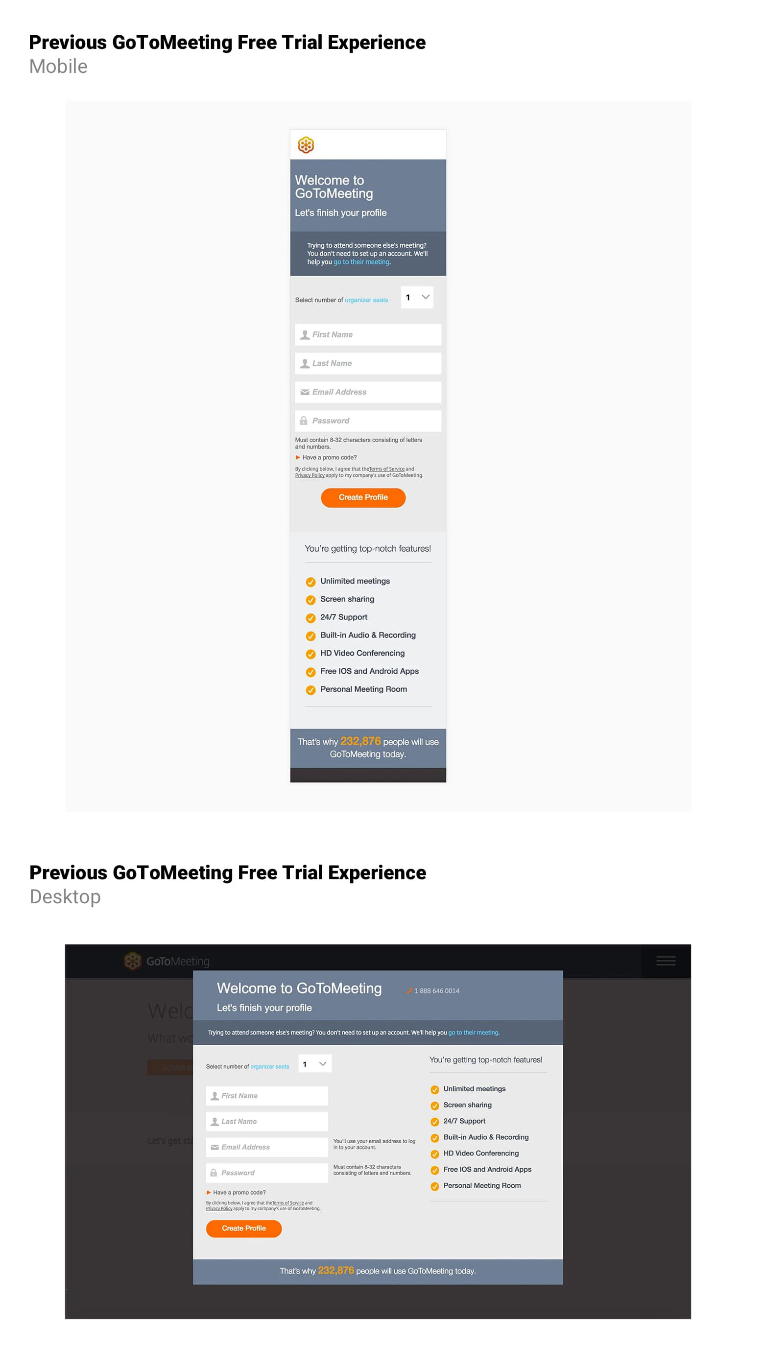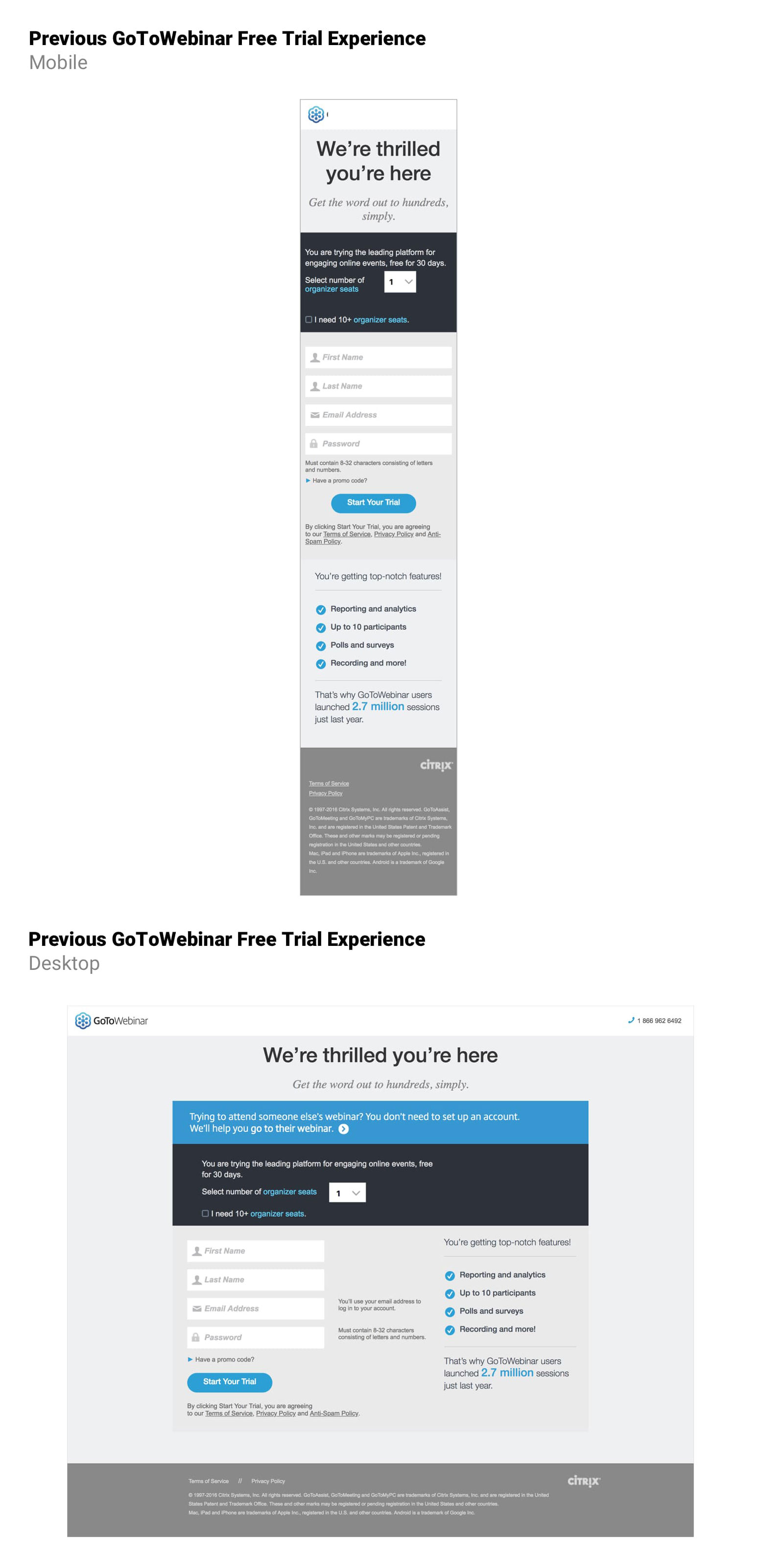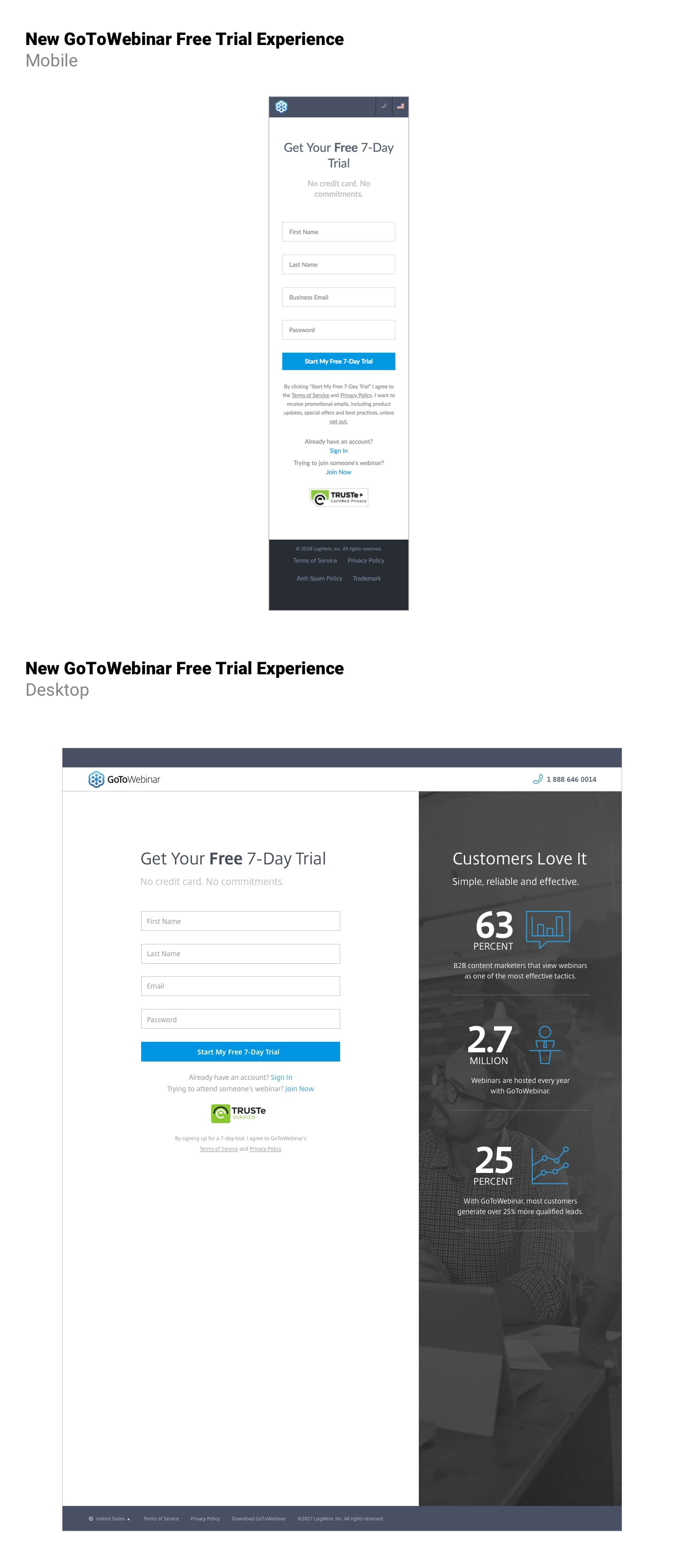 The current free trial sign up and welcome onboarding experience was not localized for users around the world, there was no acceptance and error validation within form fields, and included outdated design elements that were not aligned to current style guides and design patterns.